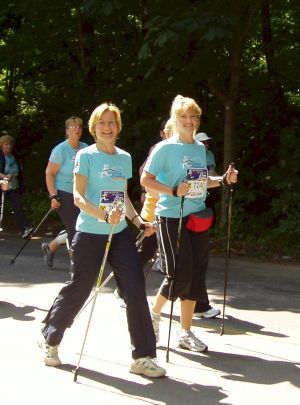 | Al van Nordic Walking gehoor? Vir baie van ons gemeentlede´n nuwe begrip. Maar nuwighede is hierdie kant van die ewenaar ons daaglikse brood. Dus, soos een man het die dapper tantes en nog-nie-tantes besluit om deel te neem aan die jaarlikse Frauenlauf waar duisende vroue van dwarsoor die wêreld opdaag om saam te hardloop en te Nordic Walk. Vir meeste van ons die eerste deelname aan ´n internasionale sportbyeenkoms.